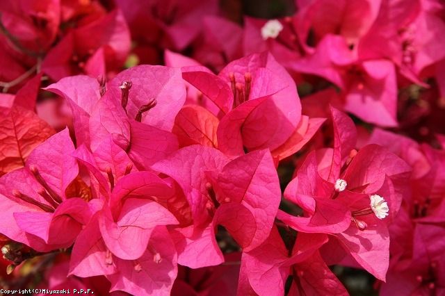 紫帯びた赤花(苞)を咲かせ、樹木型樹形の品種。