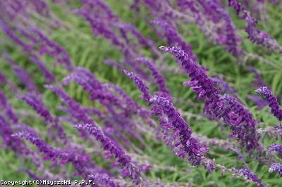 パープルメキシカンブッシュセージやアメジストセージとも呼ばれる。レウカンサの基本種はガクは紫で花が白だが、この改良種であるガクも花も紫の品種のほうが広く普及している。葉が美しいことや丈夫で栽培容易なこともあり、庭植えされているのもよく見かけるが、開花する秋までに刈られてしまうことも多く、意外と花を見ることが少ない植物でもある。