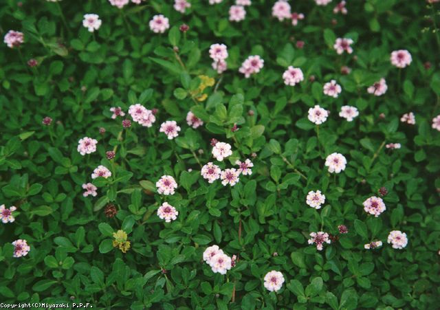 茎が横に這っていく匍匐性で、美しい緑葉を密生させ、初夏?夏にかけて白?淡桃色で球状の小花を咲かせる。性質は強健で、耐寒性・耐暑性が共にすぐれ、乾燥にも強い。また踏圧にも比較的強い。冬は落葉するため、他の植物と組みあわせて植栽すると良い。