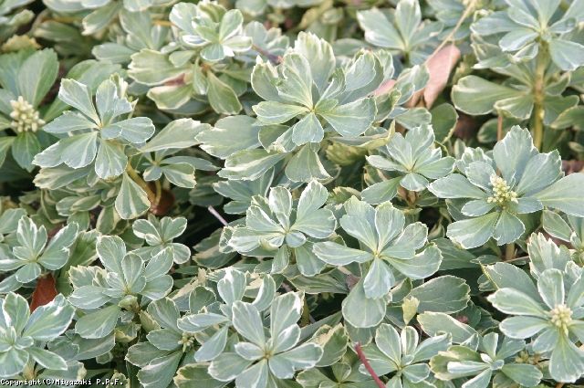 群植すると、その緑の美しさが引き立つ代表的なグランドカバー。春の淡緑色の新緑は特に美しい。性状は大変強健で、耐寒性・耐暑性共にすぐれ、病害虫にも強い。夏の直射日光に当たると株が弱り、葉焼けを起こすため、明るい緑陰などの半日陰?日陰で管理すると良い。
