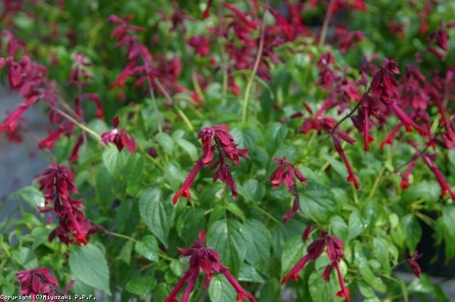 成長が早く春に植え付けるとあっという間に大株になり、次々と深紅の花を咲かせる。花数も多く、極めて観賞価値の高い宿根サルビアだが、気温が高くなると葉に元気が無くなり、花数も少なくなる。また冬場は地上部が無くなり、休眠するが、厳しい寒波にあたると、そのまま根まで枯れてしまう。周年栽培するためには意外と手間がかかる植物でもある。