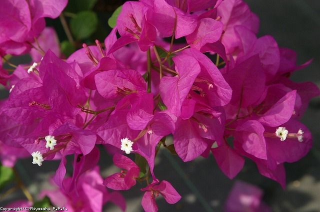 小型のピンク花を鉢いっぱいに咲かせる様は非常に愛らしく、可愛らしさという点でブーゲンビリア随一の品種である。