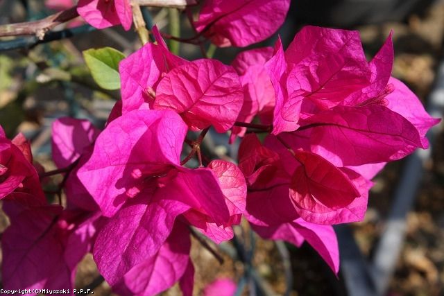 ピンク色の花(苞)を咲かせ、半ツル性樹形の品種。