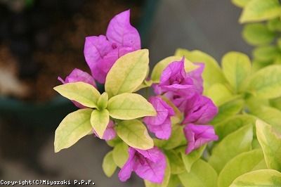 赤紫の花(苞)を咲かせ、樹木性樹形の品種。