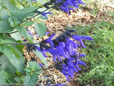 ガラニチカは様々な花色の品種が作出されているが、ガクは黒で花は青紫が基本種である。大きめの花を次々に咲かせ、開花期間も長いことから、宿根サルビアの中ではよく知られている種類である。