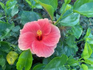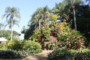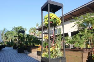 フラワースポットや林床花壇に植栽している、様々な品種のハイビスカスも見所の一つです。
