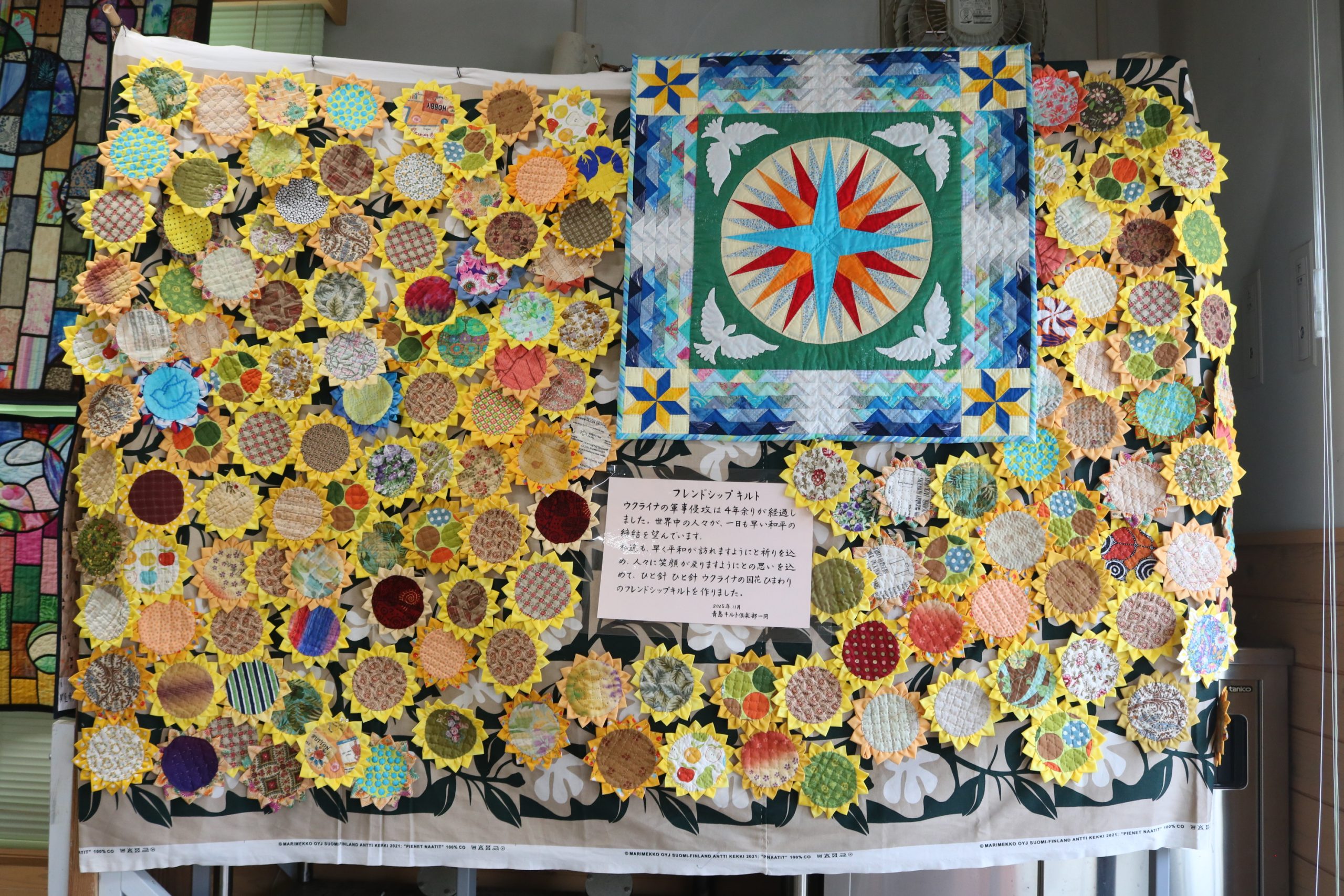 また今年は、早く平和が訪れますようにと祈りを込めた、ひまわりのフレンドシップキルトも展示されています。