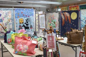 どの作品も、青島キルト倶楽部の方々が、ひと針ひと針心を込めて作りました。