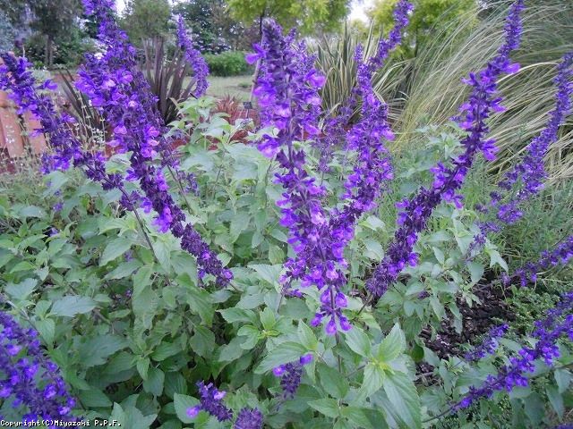 紫色の花を次々と咲かせ、開花期間が長く観賞価値が高いサルビアである。背が高めのサルビアにしては倒れづらく草姿が乱れにくい。ただし、こまめに古くなった花序を剪定するほうが、より多くの開花を楽しむことができる。