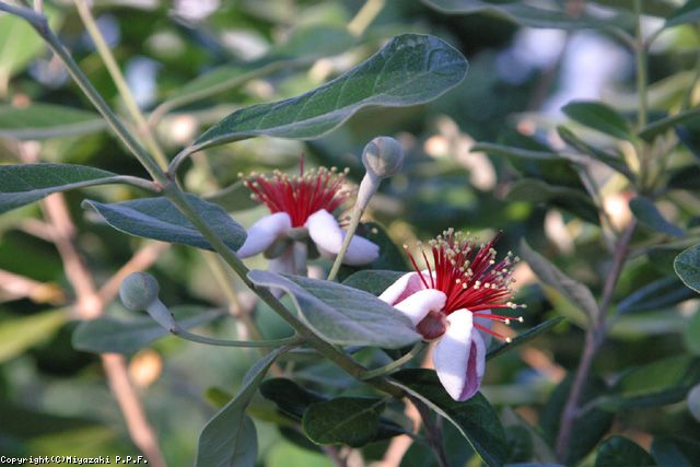 実がパイナップルの香りがするので別名パイナップルグァバと呼ばれている。耐寒性があり宮崎では野外で栽培できる。花も綺麗で果実も食されるので利用価値のある種類であるが、あまり植栽されていないようである。