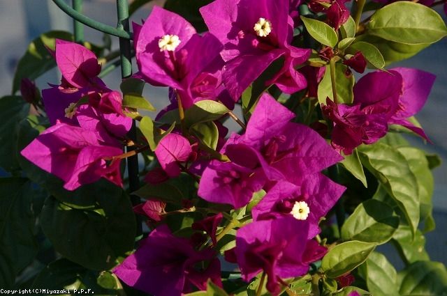 赤紫の花(苞)を咲かせ、半ツル性樹形の品種。