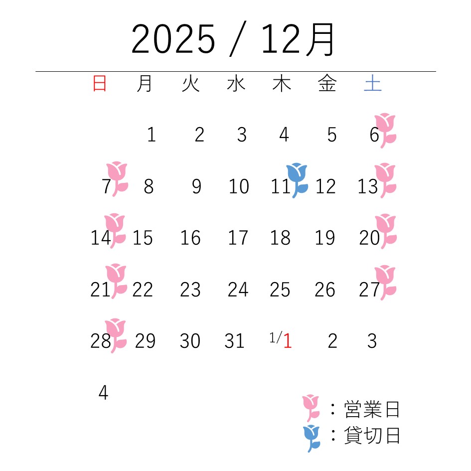 12月及び年末年始のガーデンハウスカフェの営業日のお知らせです。