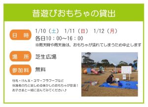 1月の3連休に芝生広場で、懐かしのおもちゃ貸出を行います⛄