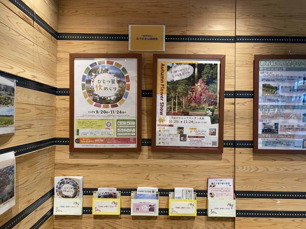 宮崎県防災庁舎1階ロビーにて「都市緑化月間」に伴う都市公園パネル展示が行われています。