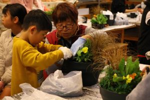 少し大きめの10号鉢を使い、一工程ごとに説明を行ったことでゆったりと作業を楽しんでいただけました。