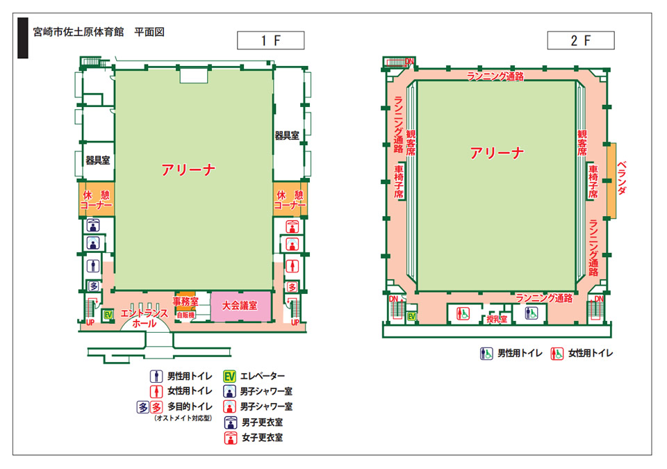 | トイレ | 1階部分:男子多目的トイレ、 女子多目的トイレ、 男子トイレ、女子トイレ 2階部分:男子トイレ、女子トイレ |