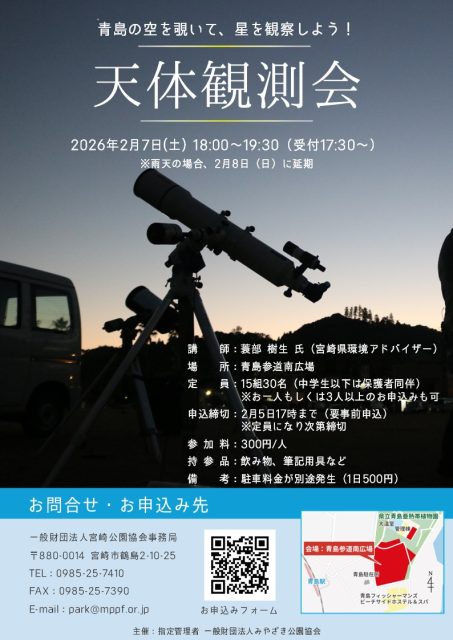 青島参道南広場にて、2月7日(土)に天体観測会を開催します。