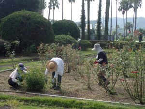 10月2日の「バラクラブ」では擦れ花除去と秋剪定をボランティアの皆さんと行いました。