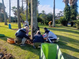 この日は植物園内のヤシ広場内の花壇の植栽準備を行いました。